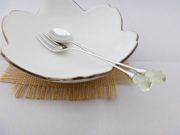 カトラリーについた飾りが、キラキラと光を反射しています。