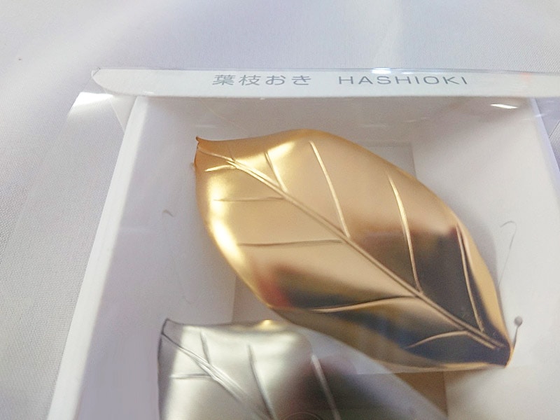 ゴールド・シルバーの椿の箸置きが各1枚ずつ入ったセットです。