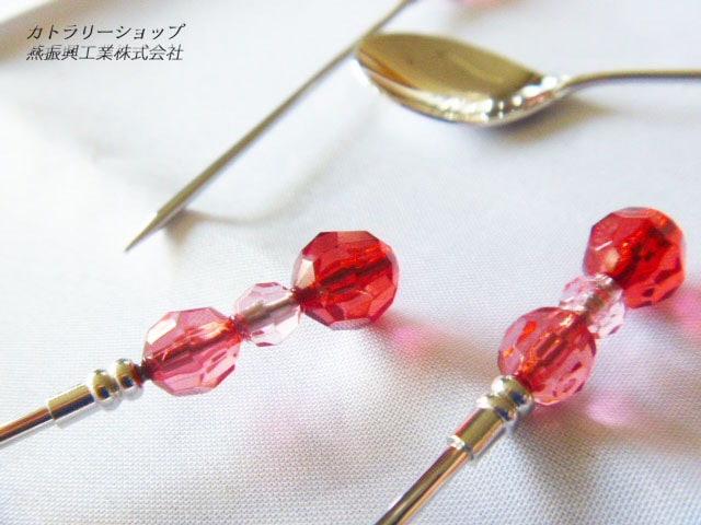 赤いビーズがキラキラと可愛いカトラリー。食卓のアクセントにいかがでしょうか。